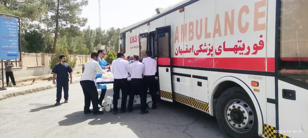 به منظور تسریع در روند درمان، ۳ نفر از مصدومان به وسیله اورژانس هوایی 🚁 و ۸ نفر دیگر نیز با استفاده از اتوبوس آمبولانس 🚍 به مراکز پزشکی اصفهان منتقل گردیدند.